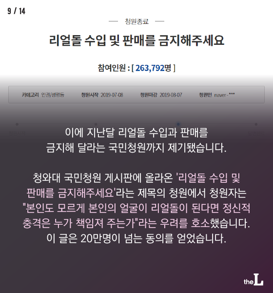 지난달(7월) 8일 청와대 국민청원 게시판에 '리얼돌 수입 및.
